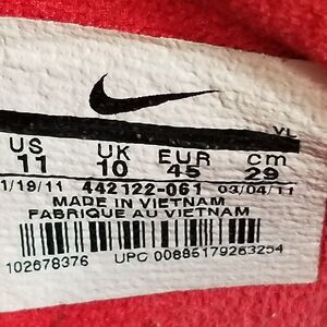Nike Medio FG US 11 Black Red White Cleats 442122-061 Year 2011