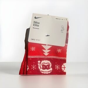 Nike Men Dri Fit Elite Crew Basketball Christmas Red Socks Size 12-15