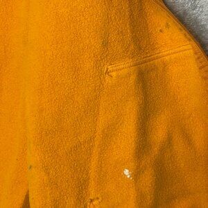 Good Pre Owned condition. There is some paint splatters, what appears to be a bleach spot on the elbow, and some little holes on the right side pocket. Please see photos for details.