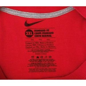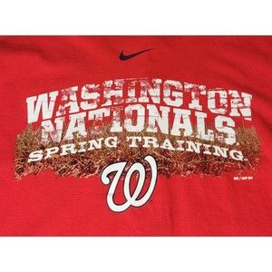 For sale is this Nike Standard Fit Men's 2XL 2011 Washington Nationals Spring Training T-Shirt Red Pre-Owned. The seam on the left arm pit is coming apart slightly. Please view all photos as they are part of the description and show condition. Comes from a Smoke-Free/Pet-Free Shop.