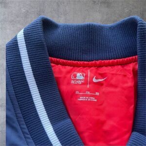 Elevate your style with the Nike Varsity Jacket in a striking multicolor design. Crafted from high-quality performance fabric, this jacket offers a perfect blend of comfort and durability. The full-zip closure and mid-length cut make it an ideal choice for those crisp fall days, whether you're heading to a baseball game or enjoying a casual outing. The iconic logo accent adds a touch of sporty flair, making it a versatile addition to your wardrobe. this jacket is new with original tags.