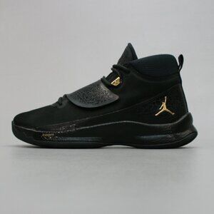 A pair of men's Nikes Air Jordan SuperFly 5 PO tennis hook loop strap and laces gym shoes.