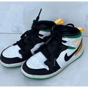 Nike Mens Air Jordan 1 Mid SE Oakland White Green Basketball Shoe Sneaker Sz 10c