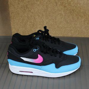 Nike Men's Air Max 1 Black/Laser Fuchsia/Blue Fury CI2450-001 (Size: 8.5)