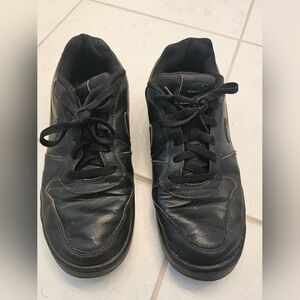 Classic black Nike sneakers. Sleek design with iconic swoosh. Ideal for everyday wear.