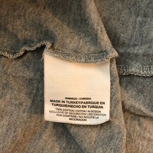 Gray athletic cut tee with a graphic design. 100% cotton, medium size, comfortable and stylish for casual wear.
