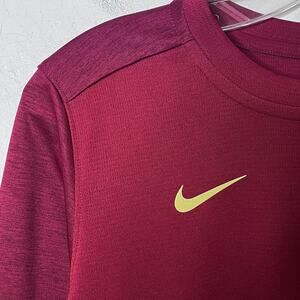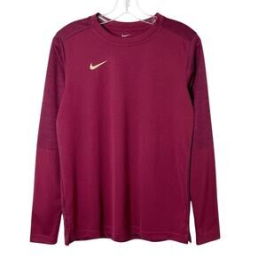 Nike Men's Athletic Long Sleeve Shirt S Maroon Red Patterned Swoosh Crew Neck