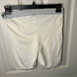 Nike athletic shorts for men. White with gray waistband. Comfortable and stylish.