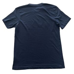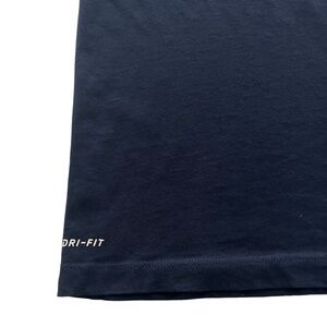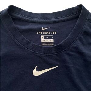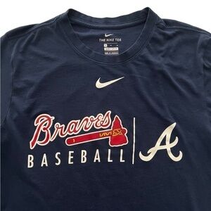 Nike Men's Atlanta Braves Baseball Dri-Fit Shirt. Size Medium. Navy blue shirt with screen print logo to front chest. 57% cotton 43% polyester. Machine washable. Good condition without flaws.