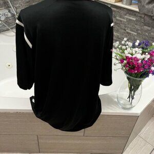Classic black polo with white details. Comfortable and stylish. Ideal for any occasion.