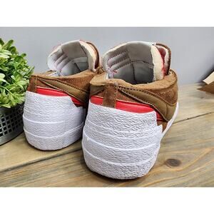 The Nike Men's Blazer LOW / SACAI British Tan Patent Leather Shoes DD1877-200 in size 10.5 are a stylish and versatile pair of athletic sneakers suitable for both activewear and casual occasions. These lace-up shoes feature a low top design with a colorblock pattern and brown leather upper material for a classic and trendy look. With a comfortable foam insole and rubber outsole, these Nike Blazers provide both performance and comfort for activities such as gym training and basketball. Ideal for summer, fall, and spring seasons, these shoes are a must-have for any man's wardrobe.