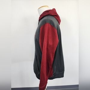 This stylish Burgundy/Gray Therma-FIT Nike Performance Hoodie with long-sleeve. This piece combines comfort and functionality, featuring a bold design and iconic branding. Perfect for everyday wear, it keeps you looking put together while staying cozy. Just do it!