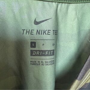 Elevate your wardrobe with the Nike Men's Long Sleeve T-Shirt, a perfect blend of style and functionality. This multicolor tee, featuring a striking camouflage pattern, is designed for the sports enthusiast and military appreciation supporter alike. With its regular fit and Dri-FIT moisture-wicking technology, it ensures comfort whether you're cheering for the OSU Cowboys or enjoying a casual day out. Ideal for fall outings, game days, or casual gatherings. Pre-owned but in great condition.