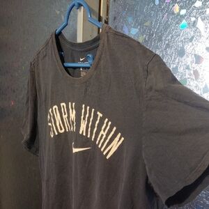 Nike short sleeve tee with 'Storm Within' print. Gray. Athletic cut.
