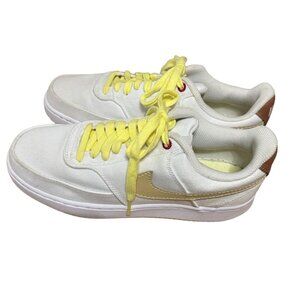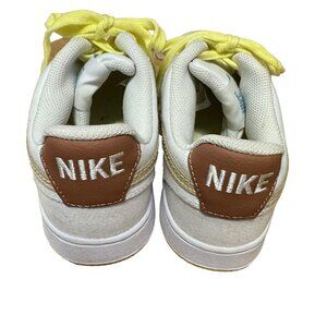 These Nike Court Vision sneakers come in a white colorway with the Nike logo on the side. They are available in US shoe size 9 and UK shoe size 8, with an EU shoe size of 42.5. The shoes are not vintage and have not been signed or customized. Perfect for all seasons, these Nike Court Vision sneakers are a must-have for any athletic shoe collection.