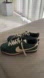 Nike sneakers with a dark green suede upper and cream accents. Stylish and comfortable for everyday wear.