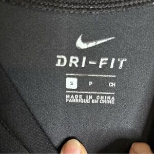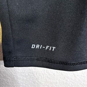 Sleek black knit tee with striking Nike logo. Comfortable and stylish. Ideal for casual outings. Dri fit technology.