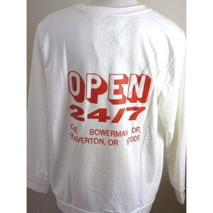 Nike Men's Dri-FIT Fleece Lined Open 24/7 Crew Neck Sweatshirt White Size 2XL NWT. Nike Men's DRI-FIT fleece lined "open 24/7" Beaverton, Oregon crew-neck sweatshirt. This item is brand new with all original tags in size Extra Extra large. (2XL) Small Nike logo graphic on the front and larger graphic on the back. "Sail/Cosmic Clay" in color. Super soft cotton and Polyester in material. Rare Nike style and quality! As always, we guarantee the authenticity. Please email us with any questions. Thanks!