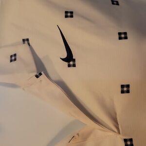 Elevate your style with this sleek Nike dri-fit polo shirt in white w navy square pattern. Button up or wear unbuttoned for a game of golf. This shirt combines comfort and elegance.Although it's made from a stretchy performance material, the Nike Dri-FIT Player Polo pays tribute to the classic style of golf and nods to the history of Nike Golf, this course-ready staple celebrates the sport's rich heritage.