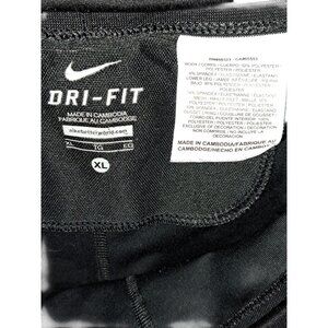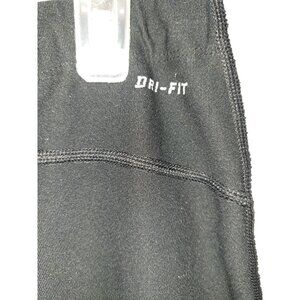Pre-owned Nike men’s Dri-Fit running pants, size XL. These black cropped capri pants feature reflective accents for visibility, a convenient rear zip pocket, and a comfortable elastic waistband. Designed with moisture-wicking fabric to keep you cool and dry during runs or workouts.