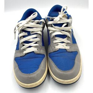 Elevate your sneaker game with these Nike Men's Dunk Low Detroit 2010 sneakers in a stylish grey and royal blue colorway. Perfect for walking or skateboarding, these athletic shoes feature a lace-up closure and standard shoe width for a comfortable fit. The sneaker's low-top shoe shaft style and solid pattern add a touch of sophistication to your streetwear style.