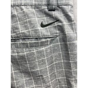 These NIKE Golf Shorts are designed for men in a size 38 with a gray plaid pattern. Made from a lightweight and breathable microfiber fabric blend of polyester and spandex, these chino-style shorts feature a Dri-Fit technology for moisture-wicking comfort on the golf course. The flat front design and mid-rise waist with belt loops offer a classic and comfortable fit, while the slash pockets provide convenient storage for golf essentials. With the Nike Swoosh logo accent, these shorts combine performance and style for a versatile option suitable for casual wear during the summer, fall, and spring seasons. Pre Owned- great use condition not flaws Please see attached pictures for more details about condition and measurements before purchasing Ty