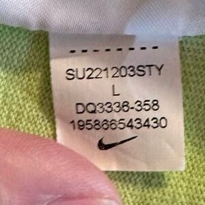 Elevate your everyday style with the Nike Men's T-Shirt in a versatile large size. This green tee is a perfect blend of comfort and casual sophistication, featuring a classic crew neck and short sleeves for a timeless look. The solid color design is accented with a convenient chest pocket and a subtle Nike logo patch, adding a touch of brand prestige to your outfit. Crafted from breathable fabric, this shirt ensures all-day comfort whether you're out with friends or enjoying a relaxed day at home. Easy to care for, it's machine washable, ensuring it stays fresh and ready for your next outing. Ideal for the modern man who appreciates simplicity with a hint of sporty flair. This pre-owned piece promises Nike quality and style for any occasion.
