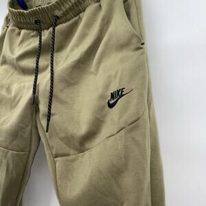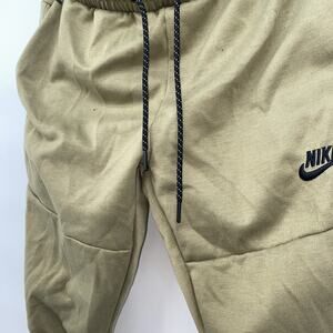 The Nike Men's Green Sportswear Tech Fleece Slim Fit Tapered Jogger Pants in size M are perfect for athletes and active individuals looking for stylish and functional activewear. Made from a blended fabric with an elastic waist and pockets, these sweatpants offer a comfortable and secure fit. The green color and tapered leg style add a modern touch, while the drawstring closure ensures a personalized fit. Machine washable and suitable for all seasons, these Nike Fleece pants are ideal for running, jogging, and other athletic activities.