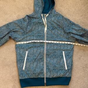 Nike Mens Hoodie Windbreaker Jacket Size M Blue White All Over Print Lined