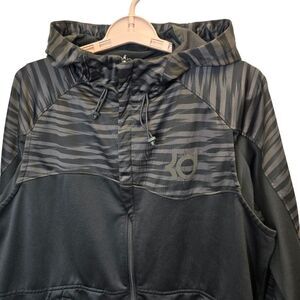 Nike Men's L KD Klutch Hyper Elite Black Grey Therma-Fit Full Zip Hoodie. Full front zipper closure. 2 front zip pockets. Hood is not removable.