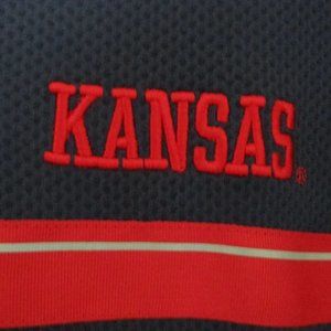 Nike Mens L/S Kansas Jayhawks Polo Sweater. Size XXL. Armpit-to-armpit 28", Length 32". 100% Polyester in Blue/Red. New with Tags, suitable for gifting.