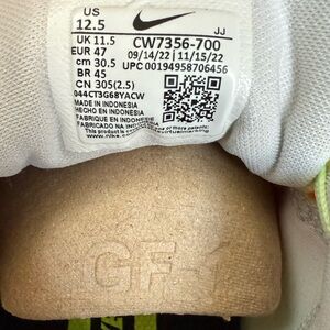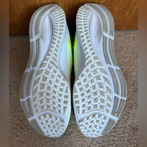 Vibrant lime green upper with orange accents. Sleek design with Nike logo. Perfect for running.