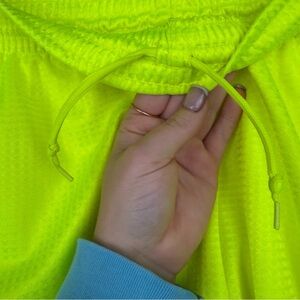 High-visibility Nike athletic shorts in bold volt yellow with black trim — built for movement, ventilation, and standout style. Lightweight mesh with full lining and Dri-FIT technology keeps it performance-ready on or off court.