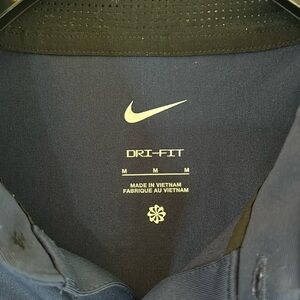 Nike Men’s Medium Navy Dri-Fit Polo Short Sleeve White Swoosh Golf Athletic