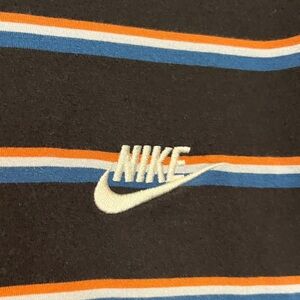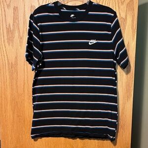 Stylish Nike tee with horizontal blue and white stripes. Perfect for casual outings. Bin: red1