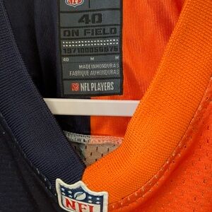 Bold Nike jersey with split navy and orange design. Features large number 34 on front. Comfortable and stylish for sports fans.
