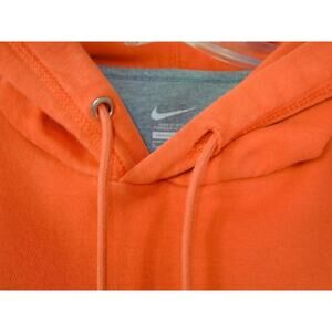 Nike Mens Orange Hoodie Sweatshirt Size Small Block Spellout Swoosh Stitched missing metal ring to drawstring, wear to sleeve edges see photos for details and measurements