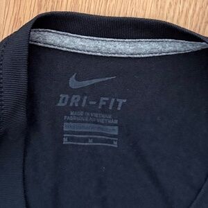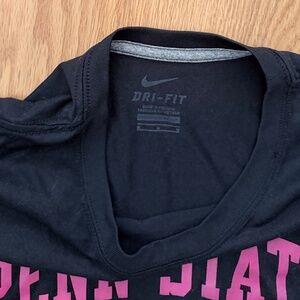 Nike Long-Sleeve DRi-Fit. Black with "Penn State Basketball" graphic on front with Pink letters. Worn & washed about 3 times--no sign of wear or tear. Silver swoosh on left chest. Nike Dri-Fit technology moves sweat away from your skin for quicker evaporation, helping you stay dry, comfortable and focused. Size Medium.