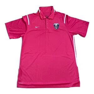 Nike Mens Pink Short Sleeve Collared Dri-Fit Athletic Polo Shirt Size Large