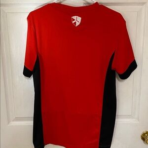Vibrant red with black accents. Nike swoosh on front. Perfect for active wear.