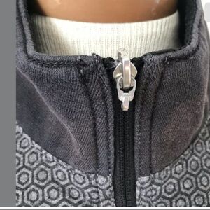 Some Fading and Discoloration on Neck Line, Bottom & Sleeve Cuff. Missing Inside zipper Pull. No Rips or holes. Smoke Free Home.