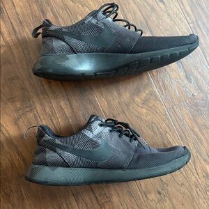 Stylish black sneakers with a unique pattern. Perfect for casual wear.