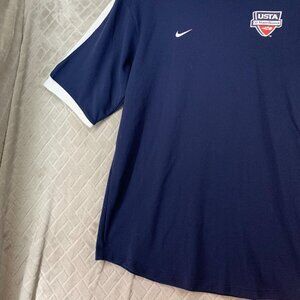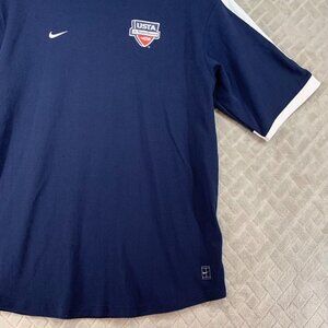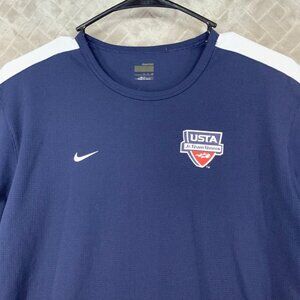 Nike Mens S Tennis Shirt Navy Blue USTA Jr Team Graphic Swoosh Logo Short Sleeve. No stains or holes.
