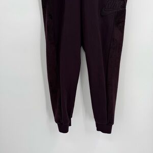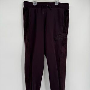 Nike Men's Sherpa Jogger Pants Purple Size XL Pull On Tapered Drawstring Waist. Pockets. Cotton polyester spandex. Deep wine color. Waist 36. Inseam 29. Measurements are approximate. Velour side panels. Very good preowned condition.