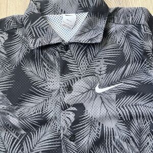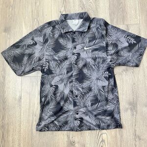 Nike Mens Short Sleeve Button Up Shirt Floral Black Grey Mesh Size S