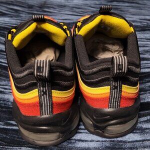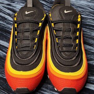 Nike 97' Black Chile Red and Magma Orange. These retailed for $170 and right now there is no size 9 available on StockX. They are re-selling over $200 in a size 8.5 and other than that, you can't find these. $150 These are so fresh in person, I promise you. They'll be asking where you got these for sure.