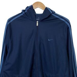 Nike Mens Size XL Athletic Workout Striped Hoodie Zip Up Track Jacket Blue