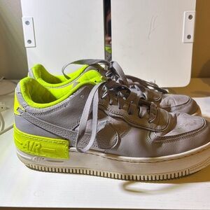 Stylish Nike sneakers with a gray base and vibrant neon yellow accents. Perfect for everyday wear.