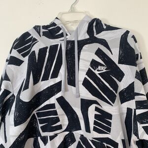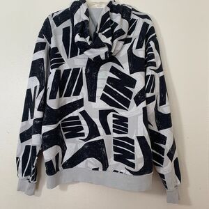 Nike Men's Sportswear All Over Print Futura Club Pullover Hoodie Size L Black White