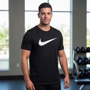 This Nike XXL black T-shirt features the iconic white swoosh logo on the front. This comfortable and stylish tee is perfect for casual wear, workouts, or everyday use. Classic fit with durable fabric ensures long-lasting wear. Grab this must-have Nike tee for your wardrobe today!